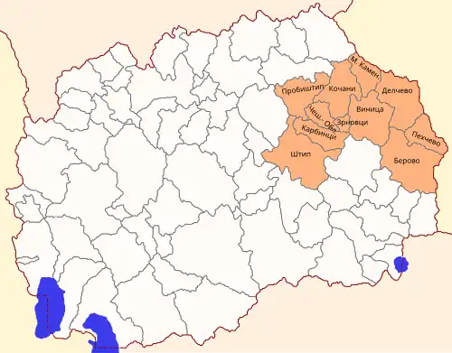 The Eastern Statistical Region (Macedonian: Источен Регион, romanized: Istočen Region) is one of eight statistical regions of North Macedonia. Eastern, located in the eastern part of the country, borders Bulgaria. Internally, it borders the Vardar, Skopje, Northeastern, and Southeastern statistical regions.
