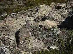 This high elevation habitat of high winds, prolonged snow cover, steep terrain, high temperature variability, and intense UV radiation lead to special species adaptations.[10] Alpine regions generally have hypoxic conditions that lead to additional energy expenses for organisms.[10] Increased elevations usually lead to shorter breeding season in animals, as is the case in the alpine ecosystems in the North Cascades. In addition to the shorter breeding season, wildlife often requires seasonal movement to different elevations in order to find adequate food and habitat.[10] However, species such as the white-tailed ptarmigan, hoary marmots, and pikas remain in high elevations of the Cascades year round left only to go to patchy and scattered alpine vegetation. The majority of species will move to lower elevations at some time throughout their life history. Adaptations such as torpor in hummingbirds, the ability of mountain goats and coyotes to camouflage in the landscape, animals developing extra fat deposits, and the raptor's ability to move efficiently in the strong winds illustrate just some of the ways species have been ability to cope with alpine conditions.[10] The white-tailed ptarmigan has an adaption of changing its plumage from white in the winter to brown in the summer in order to camouflage.[10] Many species in higher elevations produce fewer offspring than in lower elevations but spend more time nurturing their young.[10]