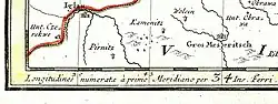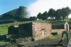Nevertheless, the origin of the name ero or erro or yerro is not definitely known. It is thought to be derived from one of several words in the Guanche language of the pre-Hispanic inhabitants, known as Bimbaches. Juan de Abreu Galindo (in a manuscript translated and published by George Glas in 1764) gives the native name of the island as Esero (or Eseró), meaning 'strong'.[5] Richard Henry Major, however, in notes on his translation of Le Canarien, observes that the Guanche word hero or herro, meaning 'cistern', could easily have lapsed into hierro by a process of folk etymology.[6] It is believed that the Bimbaches had to construct cisterns to save fresh rainwater. The Gran diccionario guanche[7] gives the meaning of the Guanche word hero in Spanish as "fuente" ('spring [water source]').
