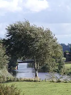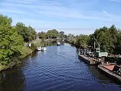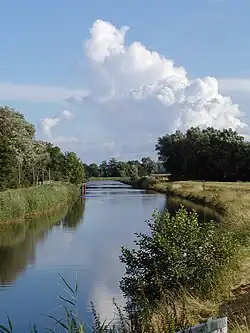 The Elbe–Weser waterway (German: Elbe-Weser-Schifffahrtsweg) or Elbe–Weser shipping channel[1] is a short-cut between the rivers Elbe and Weser in North Germany which is part-canal and part-river. It has a length of 54.7 kilometres (34.0 mi) and is designed for smaller coastal vessels. It includes some 60 kilometres (37 mi) of canal dykes and 45 kilometres (28 mi) of canal paths. The channel starts in Otterndorf with the Hadeln Canal, then becomes the Bederkesa-Geeste Canal from the town of Bad Bederkesa to the River Geeste, the final leg of the shipping channel, which flows into the Weser at Bremerhaven. It is owned by the state of Lower Saxony, maintained by the NLWKN from its Stade office. Today they just look after maintenance of the drainage system, because the economic element of the canal – commercial shipping which was particularly thriving in the late 1960s – declined increasingly from 1973 onwards and today hardly exists at all. Nevertheless, the waterway is still used by smaller yachts as a short cut between Elbe and Weser.