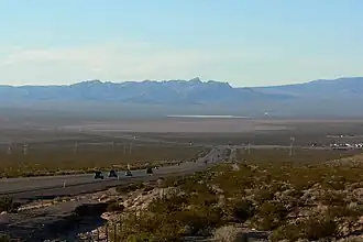 The north end of the valley contains a large salt pan, or dry lake, Dry Lake or Eldorado Playa, while the southern two thirds drains northwards.[1] U.S. Route 95 traverses eastern portions of the valley, and climbs steeply to meet U.S. Route 93, connecting Boulder City to Henderson.