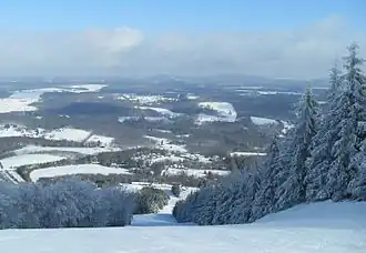 The Endless Mountains is a geographical, geological, and cultural region in Northeastern Pennsylvania.[1] The Endless Mountains region includes Bradford, Sullivan, Susquehanna, and Wyoming counties. The highest peak in the region is the North Knob of Elk Mountain at 2,693 feet (821 meters). The dissected plateau is a subrange of the Appalachian Mountains.