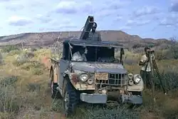 In at least one case, a survey team was taken captive by insurgent members of the Eritrean Liberation Front (ELF) in July 1965.[7] The team consisted of CW3 Jack Kalmbach (UH-1 pilot), Specialist 4 Ronald Dolecki (field classifier), and Habte Mesmer (Ethiopian interpreter).[8] The ELF burned the helicopter and marched the captives approximately 150 miles into Sudan.[9] After 12 days, Dolecki successfully escaped, and the other captives were eventually released.[10] The U.S. government characterized the insurgents as "well armed bandits," apparently an attempt to appease the Ethiopian government.[11] As a consequence of the attacks, the Ethiopian Army began escorting the survey teams.[12] This had already been authorized per the 1953 defense installation treaty between the U.S. and Ethiopia, which authorized the mapping survey and allowed "Ethiopian security forces" to accompany the survey teams outside of installations.[13] In October 1965, another survey team was attacked by insurgents, resulting in one Ethiopian soldier wounded and one ELF insurgent killed in action.[14]