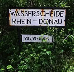 Within the Alpine foothills it runs north of the Schussen catchment area of Lake Constance towards the sources of the Brigach and Breg headwaters of the Danube in the Black Forest. It then follows the main ridge of the Swabian and Franconian Jura with the crossing of the Rhine–Main–Danube Canal northeastwards up to the Fichtel Mountains and southeastwards along the Bohemian Forest, forming the border between Germany and the Austrian Mühlviertel and Waldviertel regions with the Czech Republic, where the large Bohemian basin is drained by the Elbe River.[8][9] It again turns northeastwards along the Javořice Highlands to the Králický Sněžník Mountains of the Eastern Sudetes at the border with Poland, where the triple point of the Orlice, Elbe (North Sea); Morava, Danube (Black Sea); and Eastern Neisse, Oder (Baltic Sea) is located at the peak of Klepáč (Trójmorski Wierch). At this point, the European Watershed connects to the North Sea–Baltic Sea Continental Divide.[10]