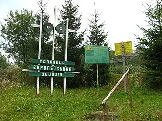 The Watershed continues in an eastern direction along the Jeseníky Mountains down to the Moravian Gate and uphill into the Beskids, with the Oder and Vistula basins in the north, reaching the triple point of Poland with Slovakia and Ukraine in the Bieszczady Mountains.[11] Then, the Watershed goes northeast near the Poland–Ukraine border, passes through the city of Lviv and, via Volyn, enters Belarus. Then it runs east-northeast along the Belarusian Ridge and continues to the Smolensk Oblast of Russia, ending at the triple point with the Caspian drainage basin in the Sychyovsky District, near the midpoint between the Western Russian cities of Smolensk and Tver.[12]