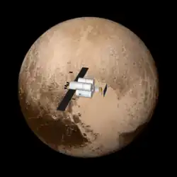The exploration of Pluto began with the arrival of the New Horizons probe in July 2015, though proposals for such a mission had been studied for many decades.[1] There are no plans as yet for a follow-up mission, though follow-up concepts have been studied.[2][3]