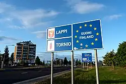 The Finland–Sweden border (or Finnish–Swedish border) is the border between the countries of Finland and Sweden. Almost the entire border runs through water: along the Tornio River and its tributaries, and in the Gulf of Bothnia. Only a few kilometres of the border are on dry land. Because of the Schengen treaty and the Nordic Passport Union, the border can be crossed mostly freely.