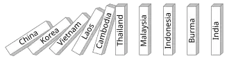 Some examples include Vietnam and Korea. Success lay with the First World if at the end of the war, the country became capitalistic and democratic, and with the Second World, if the country became communist. While Vietnam as a whole was eventually communized, only the northern half of Korea remained communist.[21] The Domino Theory largely governed United States policy regarding the Third World and their rivalry with the Second World.[22] In light of the Domino Theory, the U.S. saw winning the proxy wars in the Third World as a measure of the "credibility of U.S. commitments all over the world".