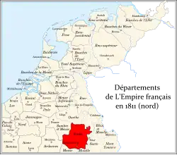 Forêts (French: [fɔ.ʁɛ]) was a department of the French First Republic, and later the First French Empire, in present-day Belgium, Luxembourg, and Germany. Its name, meaning 'forests', comes from the Ardennes forests. It was formed on 24 October 1795,[1] after the Austrian Netherlands had been annexed by France on 1 October.[2] Before annexation, the territory was part of the Duchy of Luxembourg and small parts of the Duchy of Bouillon. Its capital was Luxembourg City.