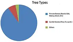 The forests of Kosovo make up about 44.7% Agricultural land comprises 53% of Kosovo's total land area and forests 44.7% of the entire surface of the territory.[1][2] Most of the forests are located in southwestern Kosovo, including the outskirts of Peja, Deçan, Istog, Junik and Gjakova and are protected by particular laws of the Kosovar Constitution.[3][4] There are several types of forests in Kosovo and they are mostly represented by pinnate ones.[5]