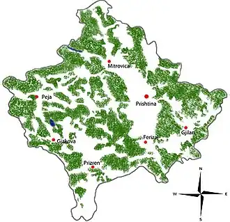 The following table shows the most important forests of Kosovo and their location:[27][28]