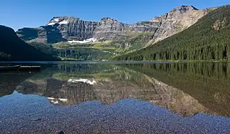 Forum Peak is a summit located on the border of Alberta and British Columbia on the Continental Divide.[3] It is the southernmost mountain in the Canadian Rockies, situated only 500 metres north of the Canada–United States border. It was named after Forum Lake below the mountain.[1] It is visible from the end of Highway 5 at Cameron Lake, which is within Waterton Lakes National Park, and the mountain is on the park's southwest border.