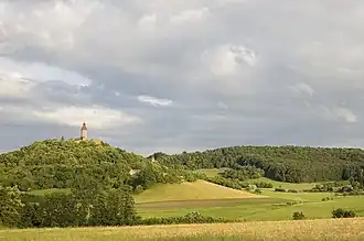 ![]() Typical landscape of the Franconian Heights: Virnsberg Castle on its eponymous hill | |