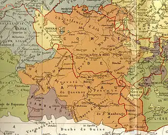 French Hainaut (French: Hainaut français [ɛno fʁɑ̃sɛ]) is one of two areas in France that form the département du Nord, making up its eastern part. It corresponds roughly with the Arrondissement of Avesnes-sur-Helpe (east), the Arrondissement of Cambrai (south-west) and the Arrondissement of Valenciennes (north-west).[1]