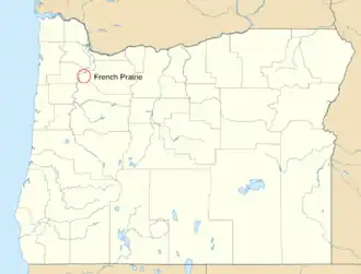 French Prairie is located in Marion County, Oregon, United States, in the Willamette Valley between the Willamette River and the Pudding River, north of Salem. The prairie area roughly corresponds to the traditional land of the Kalapuya people much decimated by pandemics during the 1830s. The fertile land would become highly contended for. The area was subsequently named after some of the earliest settlers of that part of the Oregon Country, French Canadian/Métis[1] people who were mostly former employees of the Hudson's Bay Company.[2] "French Prairie" naming was first captured in writing in the early 1850s by a French Consul to California visiting Oregon. Pierre Charles Fournier de Saint-Amant referred to the area as "les prairies françaises".[3] French Prairie is also known as an early Métis settlement in the Pacific Northwest history.[4]