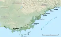 - ^ "La Côte d'Azur : ça commence et s'arrête où ?". France 3 Provence-Alpes-Côte d'Azur (in French). 8 May 2022. Archived from the original on 26 July 2023. Retrieved 26 July 2023.
