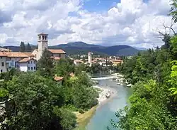 Friuli is bordered on the west by the Veneto region with the border running along the Livenza river, on the north by the crest of the Carnic Alps between Carnia and Austrian Carinthia, on the east by the Julian Alps, the border with Slovenia and the Timavo river, and on the south by the Adriatic Sea. The adjacent Slovene parts of the Soča/Isonzo valley from Gorizia/Nova Gorica up to Triglav and the Vipava Valley, forming the Goriška region, may also be considered part of historic Friuli.