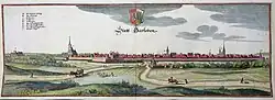 Gardelegen was founded in the 10th century (first named 1196). The castle Isenschnibbe was owned by the House of Alvensleben from 1378 until 1857. On the neighboring heath Margrave Louis I. of Brandenburg gained, in 1343, a victory over Otto the Mild of Brunswick. In 1358 Gardelegen became a member of the Hanseatic League. It suffered considerably in the Thirty Years' War, and in 1757 barely avoided being burned by the French.[3][4] During World War I, Germany operated a special prisoner-of-war camp for ethnic Poles from the Russian Army, with the aim of subjecting them to propaganda and conscripting them into a planned German-controlled Polish army to fight against Russia (Poland was partitioned between Germany, Russia and Austria at the time).[5] During the final stages of World War II, on 15 March 1945, 52 people lost their lives during an air raid.[6] On 13 April 1945, the Isenschnibbe Barn at Gardelegen was the site of a massacre of more than 1,000 concentration camp inmates, many of them from Poland, the Soviet Union, France and from other countries, perpetrated by members of the SS, the Wehrmacht, the Volkssturm, other Nazi Organisations and local civilians.[7] The majority of the murdered is unknown. The site of the massacre is now a memorial with a sign at the cemetery which reads:Gardelegen Military Cemetery. Here lie 1016 allied prisoners of war who were murdered by their captors. They were buried by citizens of Gardelegen, who are charged with responsibility that graves are for-ever kept as green as the memory of these unfortunates will be kept in the hearts of freedom-loving men everywhere.[8]