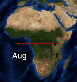Lying almost entirely within the tropics, and equally to north and south of the equator, Africa does not show excessive variations of temperature.[1][12]