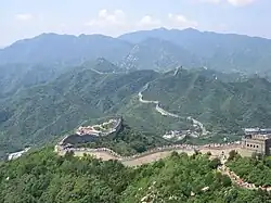 The mountains north of Beijing including Badaling, Jundu Mountains and Fenghuanling all belong to the Yanshan range, which runs east–west, across northern Hebei Province. Yanshan separates the North China Plain from the steppes and held considerable military significance in history. All of Beijing's Great Wall sections were built in the Yanshan range, which reaches a height of 2,241 m (7,352 ft) at Haituoshan on the border between Yanqing County and Hebei.[5]
