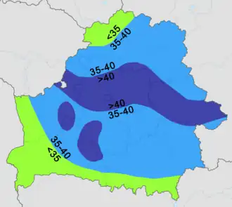 3. ^ a b c d e f g h i j k l m n o Zaprudnik, Jan; Fedor, Helen (1995). "Belarus: Physical Environment". In Fedor, Helen (ed.). Belarus and Moldova: country studies (1st ed.). Washington, D.C.: Federal Research Division, Library of Congress. pp. 26–29. ISBN 0-8444-0849-2. OCLC 33359277. Public Domain This article incorporates text from this source, which is in the public domain.{{cite encyclopedia}}: CS1 maint: postscript (link)