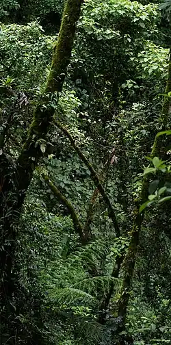 Costa Rica is a biodiversity hotspot. While the country has only about 0.03% of the world's landmass, it contains 5% of the world's biodiversity.[15][16] It is home to about 12,119 species of plants, of which 950 are endemic.[17] There are 117 native trees and more than 1,400 types of orchids; a third of them can be found in the Monteverde Cloud Forest Reserve. Almost a half of the country's land is covered by forests, though only 3.5% is covered by primary forests.[17] Deforestation in Costa Rica has been reduced from some of the worst rates in the world from 1973 to 1989, to almost zero by 2005.[18]