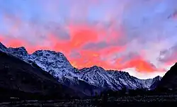 The Ghanche District ("Ghanche" means the 'great glacier' and is written as "Gangche" by the local people) is the easternmost district of Baltistan. To the east is the Leh District of Ladakh (under administration of India).[2][3][4] To the Northeast is Xinjiang (China), to the north and northwest is the Skardu District, to the west is the Astore District, and to the south is the Indian territory of Ladakh. The Actual Ground Position Line (AGPL) at the easternmost part of Ghanche District is located across the Saltoro Ridge. The Line of Control along the easternmost region of the Ghanche District ends before the start of the Siachen Glacier (entirely under control of India) at NJ9842. There has been a proposal made to turn the Siachen Glacier region into a peace park.