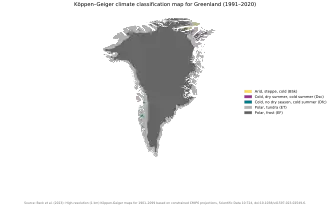 11. ^ "The Observed Climate of Greenland, 1958–99 with Climatological Standard Normals, 1961–90" (PDF). Danish Meteorological Institute. Retrieved 31 October 2019.