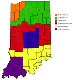 Northern Indiana consists of 26 counties in the northern third of the state.