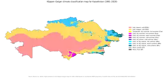 Kazakhstan map of Köppen climate classification.