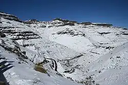 Solifluction deposits, blockfields, blockstreams and stone garlands can be found across the higher portions of the Lesotho Highlands. These features were formed in connection to the periglacial conditions that prevailed during the last glacial period in the area.[10][11]