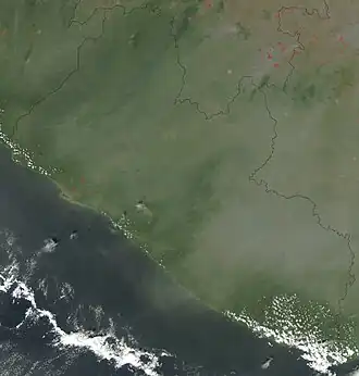 Climate change in Liberia causes many problems as Liberia is particularly vulnerable to climate change. Like many other countries in Africa, Liberia both faces existing environmental issues, as well as sustainable development challenges.[7] Because of its location in Africa, it is vulnerable to extreme weather, the coastal effects of sea level rise, and changing water systems and water availability.[8] Climate change is expected to severely impact the economy of Liberia, especially agriculture, fisheries, and forestry. Liberia has been an active participant in international and local policy changes related to climate change.[9]