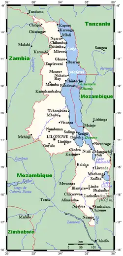 This is a list of the extreme points of Malawi, the points that are farther north, south, east or west than any other location.