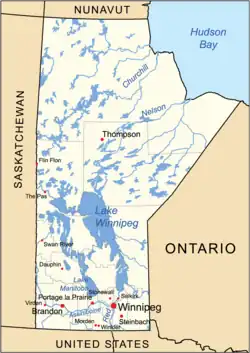 {{cite journal}}: Cite journal requires|journal=(help) - ^ "Manitoba Historical Geography". Retrieved 23 September 2006.