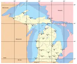 Michigan map, including territorial waters.