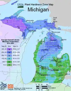 Michigan USDA Plant Hardiness Zone Map.