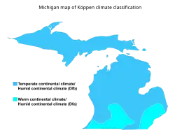 Michigan map of Köppen climate classification.