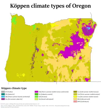- ^ a b c "Climate of Oregon". Desert Research Institute. Archived from the original on December 21, 2016. Retrieved December 10, 2016.