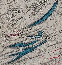 The Allegheny Plateau is dissected by valleys formed by small streams and springs with elevation differences between valley floors and hilltop peaks differences that usually vary by a few hundred feet. The plateau is underlain by sedimentary rocks of Mississippian and Pennsylvanian age, which bear abundant fossils, mineral deposits such as iron, as well as natural gas, coal and petroleum. These regions fostered 17th-19th century industries locally, even into the 1930s days of mass production. To the south and east of the escarpment/plateau region, the folded mountains and alternating valleys are known as the Ridge-and-Valley Appalachians. These extend from the South of the Appalachians to northern New England except where it is cut by water gaps. In Northeastern Pennsylvania east of Harrisburg on the Susquehanna River, these ridge and valley features contain the richest and most widespread deposits of high energy clean burning anthracite coal in the world—the Coal Region—without which the American Industrial Revolution likely would have been delayed or not possible.