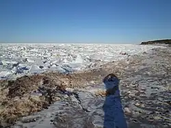 Winters are moderately cold and long but are milder than inland locations, with clashes of cold Arctic air and milder Atlantic air causing frequent temperature swings.[3] The climate is considered to be more humid continental climate than oceanic since the Gulf of St. Lawrence freezes over, thus eliminating any moderation.[3] The mean temperature is −7 °C (19 °F) in January.[4] During the winter months, the island usually has many storms (which may produce rain as well as snow) and blizzards since during this time, storms originating from the North Atlantic or the Gulf of Mexico frequently pass through.[3] Springtime temperatures typically remain cool until the sea ice has melted, usually in late April or early May.