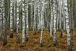 The mixed and deciduous forest belt is triangular, widest along the western border and narrower towards the Ural Mountains. The main trees are oak and spruce, but many other growths of vegetation such as ash, aspen, birch, hornbeam, maple, and pine reside there. Separating the taiga from the wooded steppe is a narrow belt of birch and aspen woodland located east of the Urals as far as the Altay Mountains. Much of the forested zone has been cleared for agriculture, especially in European Russia. Wildlife is more scarce as a result of this, but the roe deer, wolf, fox, and squirrel are very common.