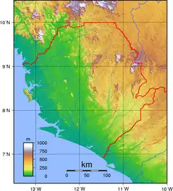This is a list of the extreme points of Sierra Leone, the points that are farther north, south, east or west than any other location.