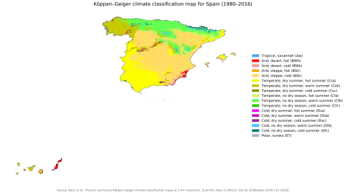 Peninsular Spain experiences four principal climatic types: semi-arid, arid, maritime, and Mediterranean.[10]