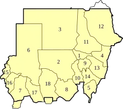Sudan is divided into 18 states and one area with special administrative status. The states of Sudan are: