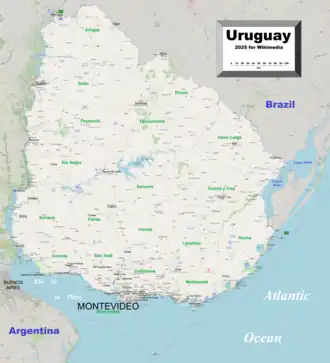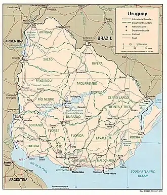 This article incorporates text from this source, which is in the public domain.{{cite encyclopedia}}: CS1 maint: postscript (link) - ^ "Uruguay". The World Factbook. Central Intelligence Agency. May 27, 2021. Retrieved June 9, 2021.