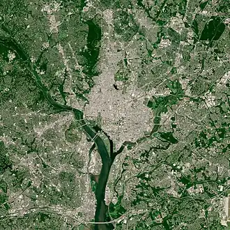 In 1965, President Lyndon Johnson called the Potomac River a "national disgrace" and used the river to illustrate the need for the Clean Water Restoration Act of 1966.[6] The river is now home to a vibrant warm-water fishery and naturally reproducing bald eagles have returned to its banks.[7] Despite its intensely urbanized landscape, the District of Columbia is a center for research on urban wildlife management, invasive species management, urban stream restoration, and the aquatic ecology of urban streams.[8] The National Park Service's Center For Urban Ecology is a regional source of expertise and applied science for the region.[9]