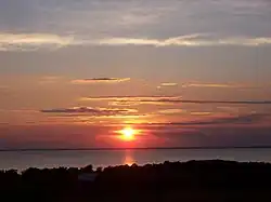A lot of the named islands in Wisconsin are in the Great Lakes. Many surround the Door Peninsula in Lake Michigan, or are part of the Apostle Islands in Lake Superior.[43] The Mississippi River also has a multitude of islands on the state's western boundary. Inland lakes and rivers contain the rest of the islands of Wisconsin. Many lakes, including Beaver Dam Lake, Fox Lake, and Lake Winnebago, have an abundance of islands. Large rivers, like the Wisconsin River and Fox River, have many islands as well. Doty Island, in the Fox River, is one mile wide and one and a half miles long.[44] French Island, in the Mississippi River within the city of La Crosse, covers an area of 2.02 square miles (5.2 km2) and has a population of 4,207.[45]