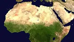 Terrains in the area can be divided into three main types: the large arid desert covering most of it, the fertile south and north, and finally the high mountains of the Atlas, Ahaggar, Zagros and the Anti-Lebanon Mountains, along with the Hijaz Mountain range.