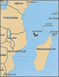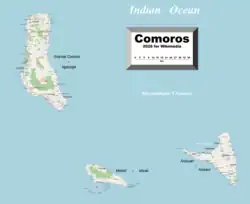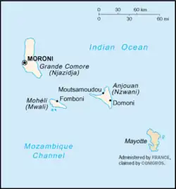 This is a list of the extreme points of the Comoros, the points that are farther north, south, east or west than any other location. This list excludes the French-administered island of Mayotte which is claimed by the Comorian government.