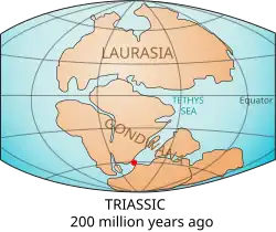 The geological history of the Falkland Islands began during the Precambrian era more than 1 billion years ago, when Proterozoic granites and gneisses were laid down in Gondwana. These rocks became part of the Cape Meredith/ formation and outcrop at the Cape.[2] During Siluro-Devonian times, these rocks were overlain with quartzose and subarkosic sandstones with some siltstone and mudstone, rocks that are particularly erosion- and weather-resistant, giving these parts of the islands a rugged landscape and coastline.[3]